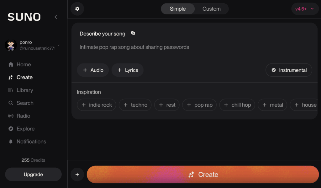 Suno AIでは、大きく分けて2つの方法で楽曲を生成できます。初心者向けの「Simple」モードと、より詳細な指定が可能な「Custom」モードです。